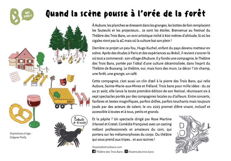 PRESSE ET PUBLICATIONS BIBBELE MAG' ÉTÉ 2025 #35 Cliquez ici ICI ALSACE Scènes d’été : festival d’arts vivants à Aubure du 29 au 31 août 2025 ! Cliquez ici